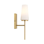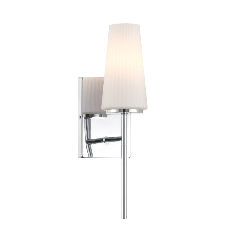 The stately style of this 1-light sconce is a superb choice for any space. A tall, sleek conical shade of white opal fluted glass sits atop a slender arm. Use this sconce individually or in groupings to brighten up every room.