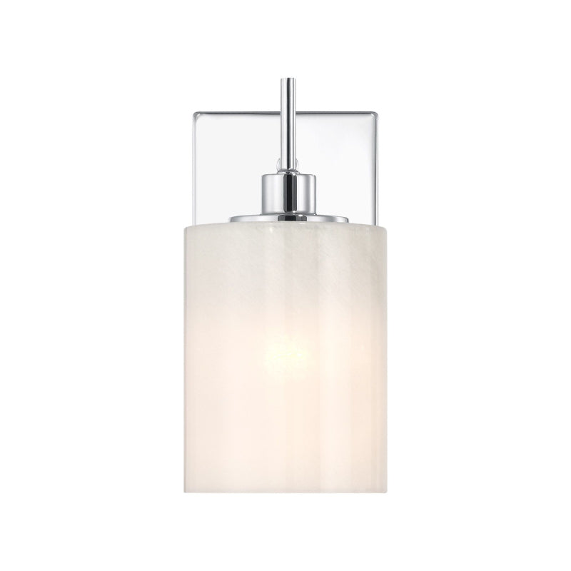Pep up any room with this simply beautiful 1-light sconce! Its centerpiece is a shade of strie glass featuring dazzling swirls that draw the eye, soften the glow and work beautifully with finish.