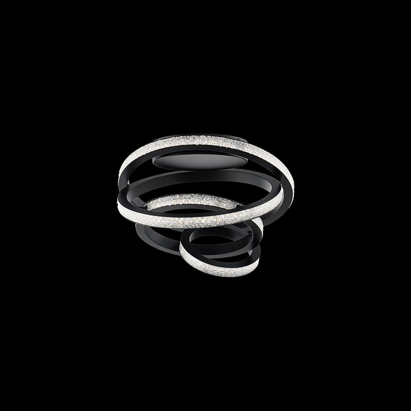 Twisted. A curvy black metallic frame embraces a sparkling Radiance Crystal Dust diffuser, capturing and casting a glowing vortex of light.