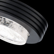Enthralled. A banded circle clasps a hazy Optic Haze QuartzTM shade and Radiance Crystal Dust diffuser lit by hidden LEDs. Variegations in the organic shade delivers intriguing patterns of illumination to awed onlookers.