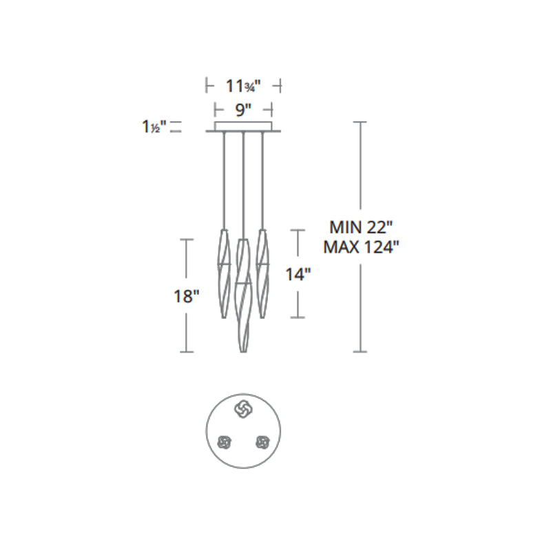 Schonbek Beyond BPD13203 Kindjal 3-lt 12" LED Pendant