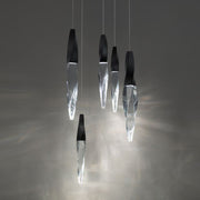 A subtle twist of luxe. Kindjal is an exquisite optic crystal icicle that twists to a point from a cohesive metal fitting that conceals a powerful LED that provides ample downlighting. Stylish, textured materiality.