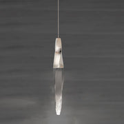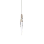 A subtle twist of luxe. Kindjal is an exquisite optic crystal icicle that twists to a point from a cohesive metal fitting that conceals a powerful LED that provides ample downlighting. Stylish, textured materiality.