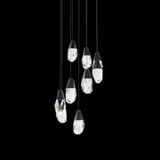 A shower of jewels. Suspended in mid-air, Schonbek Optic Crystal and Optic Haze Quartz elements composed of natural quartz gemstone illuminate at varying heights to entice. Cascading from above and perfectly designed to make a powerful yet elegant statement.