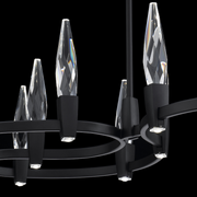 Intertwining with graceful allure, the Twirl crystal pendant features metal curves sweeping together like dancers in a waltz. Elegant candle slips cradle faceted Optic Crystal flames, softly illuminated by hidden LEDs, casting a romantic glow that enchants the room with its timeless beauty.
