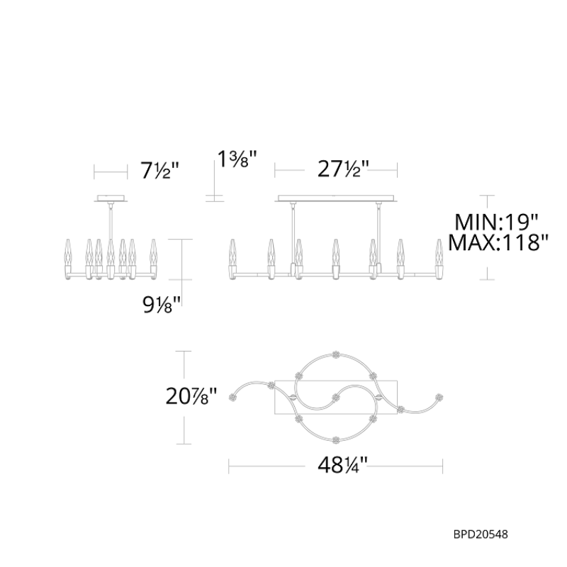 Schonbek Beyond BPD20548 Twirl 11-lt 48" LED Pendant, CCT Selectable