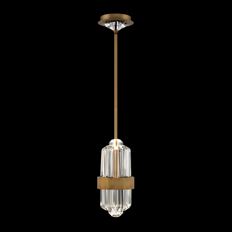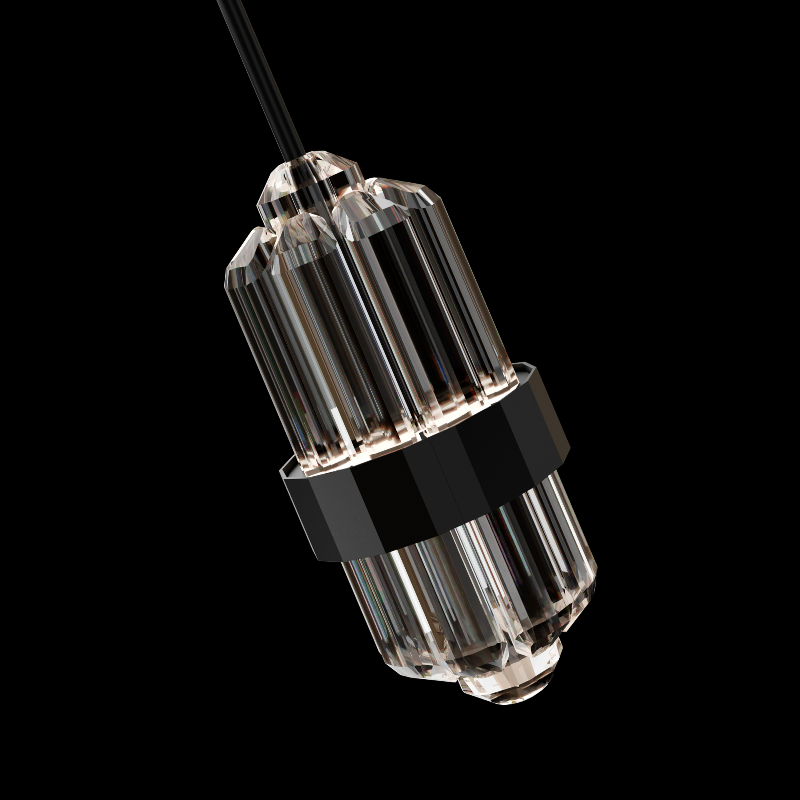 A sleek, cylindrical design crafted from grooved clear crystal, the Silo pendant light radiates shimmering light through a Radiance® Crystal Dust diffuser, creating an inviting ambiance. Minimalist metal accents add sophistication and a timeless aesthetic.