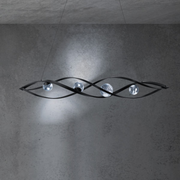 Like a current of air, Slipstream is modern, graceful and stylishly curved with seamless spatial flow. This extraordinary luminaire adds a twist of matte black metal with optic haze crystal orbs. composed of natural quartz gemstone, to radiate captivatingly and enhance your room with a unique look and personality.