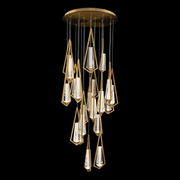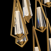The Devotion multi-light luminaire sparkles brilliantly from twenty-one pendants composed of Radiance® Crystal Dust tapers held within triangular frames and installed on one round canopy. This dramatic luminaire creates an artful statement while providing ample lighting to surrounding spaces.