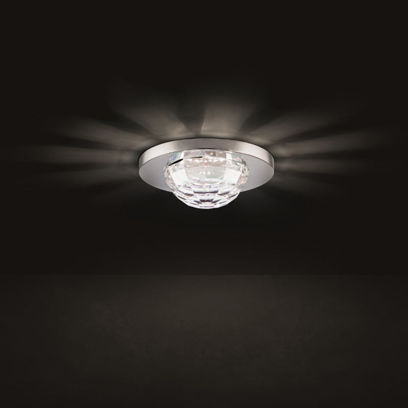 A smoothly faceted Schonbek Radiance Crystal shade emanates sparkling symmetrical light, bringing charm and balance to every home’s design.