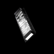 A faceted abstract design of solid optic crystal. Hidden LEDs illuminate the crystal internally and also provide downlight for wayfinding on this interior wall sconce.