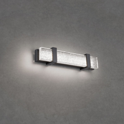A stunning bath wall luminaire for the ages. V-cut channels are cut into Schonbek optic crystal with hand applied precision cut crystal illuminated beautifully with uniform LED technology.