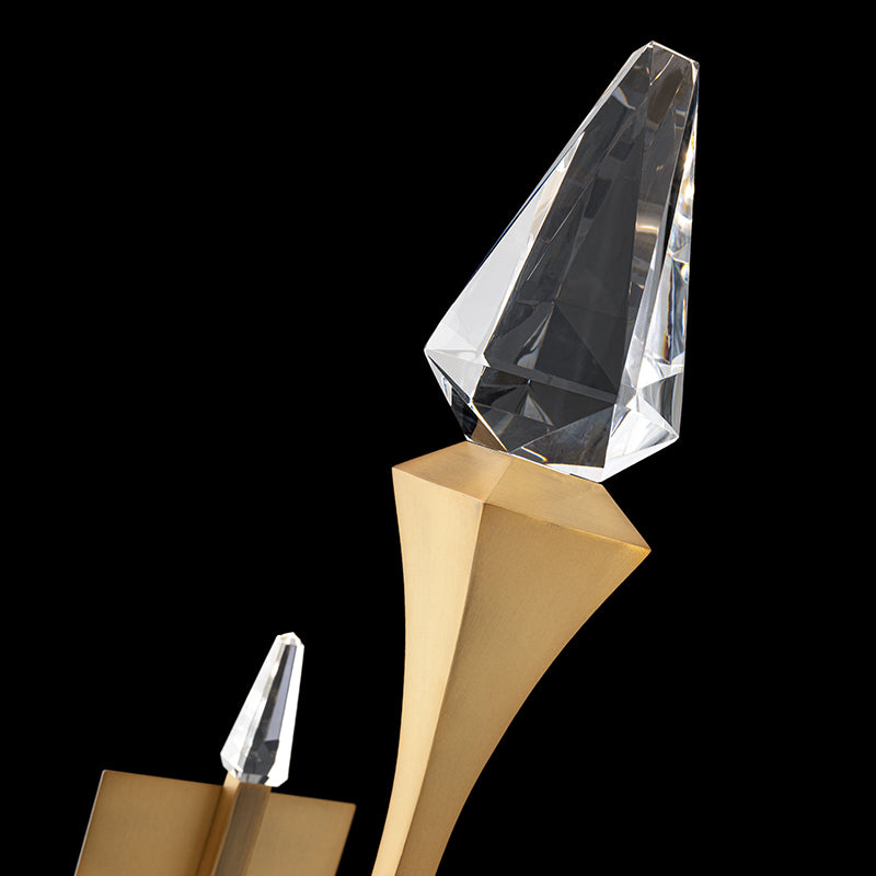 Like an architectural marvel, the Plumeria crystal wall sconce has sparkling tapered Optic Crystal elements which crown the ends of sleek, curving arms in an elegant composition. LED illumination filters through the faceted crystal, reflecting off the polished arms to create a stunning, ambient glow that fills the space with brilliance.