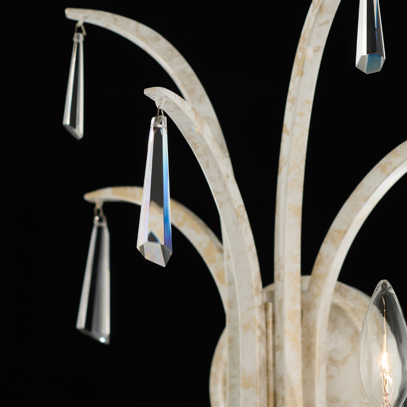 Evoking a modern organic allure, the Tinsley wall sconce features gracefully contoured arms that rise and dip in a bold, sculptural silhouette. Each tapered arm is subtly adorned with hexagonal Radiance® Crystal prisms, adding a touch of understated elegance, while tall candelabra bases lend a refined, timeless accent.