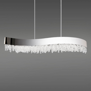 A breathtaking composition that is both sentimental and soothing. Soleil is a sleek, modern curvilinear pendant dripping with Schonbek optic crystal strands of varying lengths, suggestive of melodic scales. State of the art LEDs deliver robust illumination with energy efficiency and exceptional quality on surfaces below.