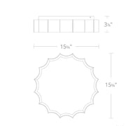 Behold the understated opulence of Tarte, whose delicately ruffled golden frame lends an air of refined simplicity. Light sources within cast a mesmerizing glow through the flat Radiance Crystal Dust shade, reflecting illumination into an intricate tapestry of jewel-like patterns.