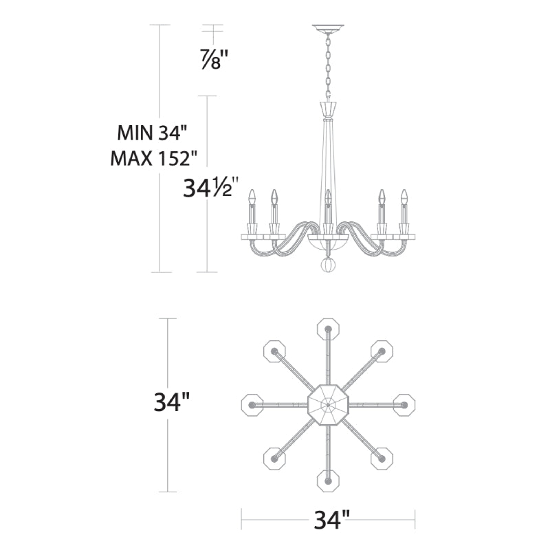 - 8 x 60W max E12 Base Incandescent (Not Included)