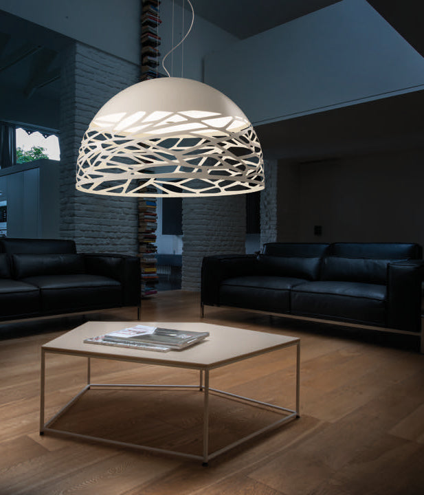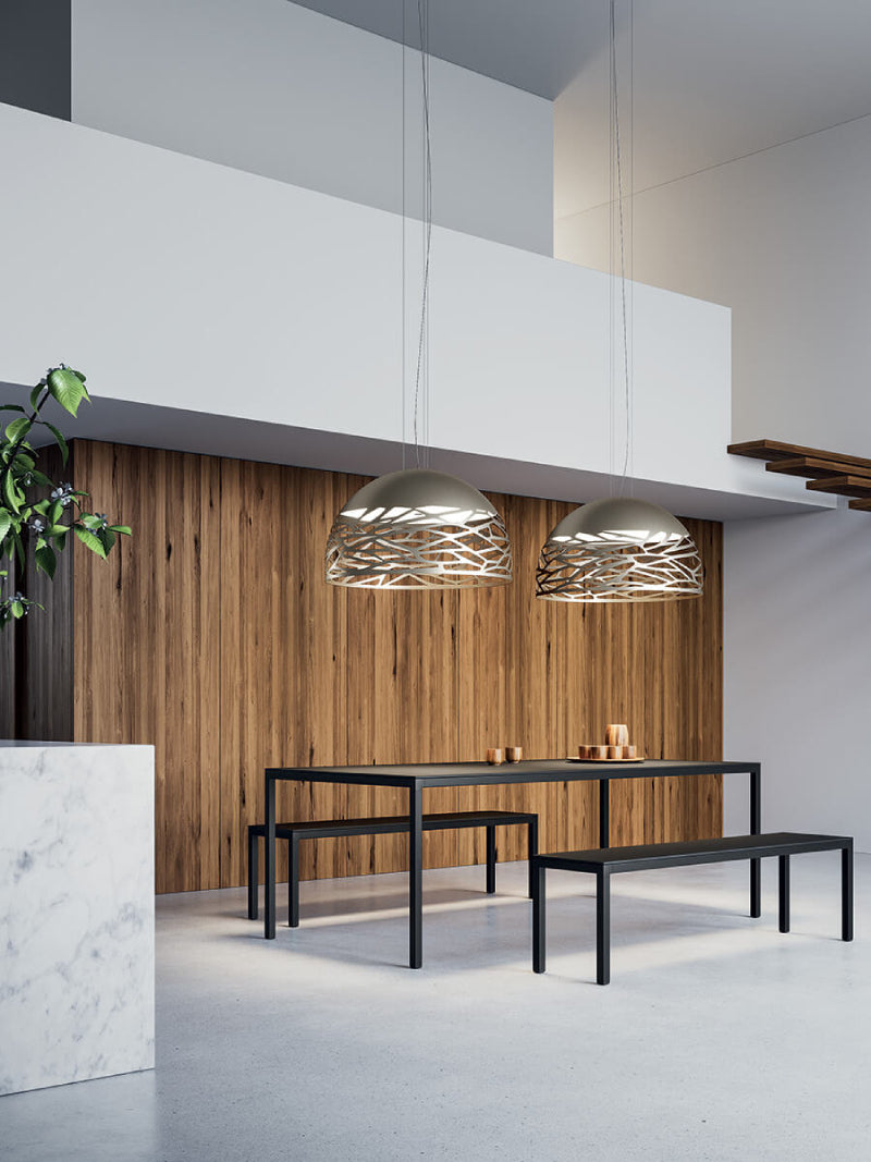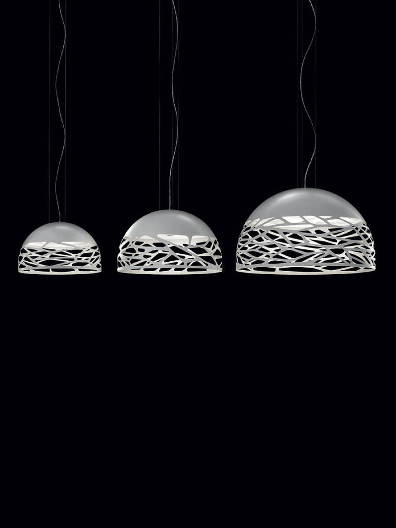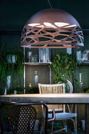 Seductive beauty with a bold personality thanks to the strong and precise laser cuts, which lighten the metal of the lampshade and create an intriguing play of light and shadow. Kelly is a multifaceted family of suspension and wall lamps that stand out with elegance in any living space thanks to the variety of available forms and finishes.