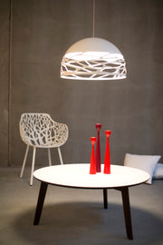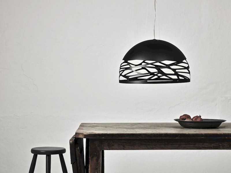 Seductive beauty with a bold personality thanks to the strong and precise laser cuts, which lighten the metal of the lampshade and create an intriguing play of light and shadow. Kelly is a multifaceted family of suspension and wall lamps that stand out with elegance in any living space thanks to the variety of available forms and finishes.
