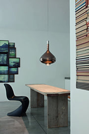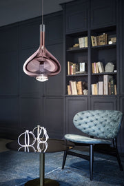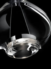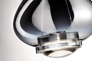 In Sky-Fall, the traditional glass processing techniques embrace the most advanced LED technologies. The shape of Sky-Fall captures the imagination in its reminiscence of ancient decanters in precious blown glass. Its function amazes thanks to the innovative double 10 W LED source that diffuses direct and indirect light.