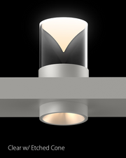 - Shade Color: Clear Glass w/Etched Acrylic Cone , Etched Cylinder Glass