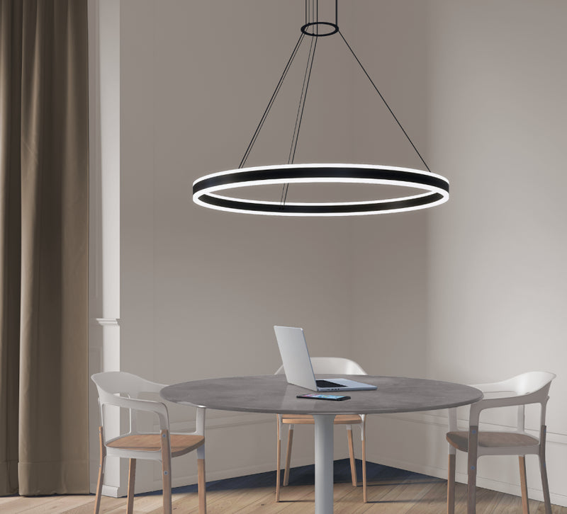 Double Corona introduces bidirectional lighting symmetry to the circular profile of Corona, a Sonneman classic. The warm glow of solid cast, frosted acrylic rings radiates LED illumination in both up and down directions, combining balance with geometric perfection.