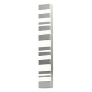 An alternating arrangement of positive and negative spaces, in a varying pattern of thick and thin, suggests a visual jazz-like rhythm. This LED bath bar brings an unexpected interest and freshness to an otherwise predictable environment.