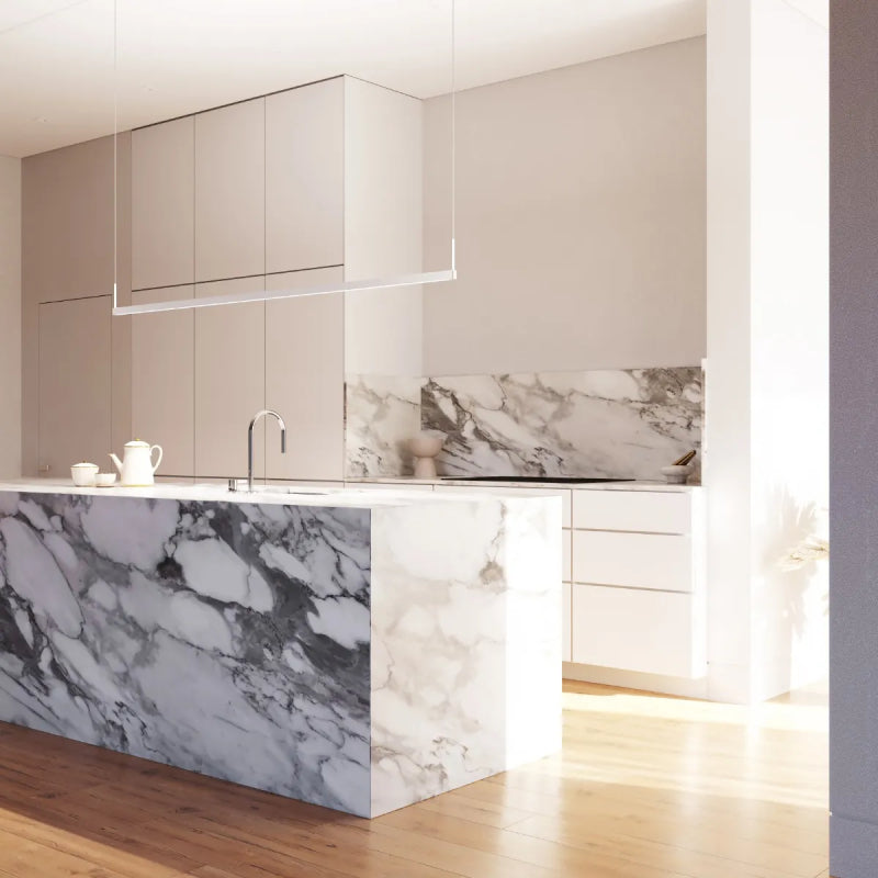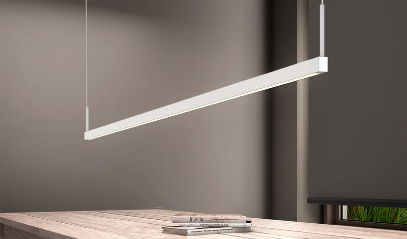 Thin-Line pendants are available in single- and double-sided configurations; the single-sided configurations can be installed as a downlight or up-light, providing direct or indirect illumination.