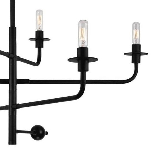 A civilized approach to an industrial aesthetic, its distinct simplicity and expansive sculptural presence makes this chandelier ideal for open spaces. Also available as a Sconce.