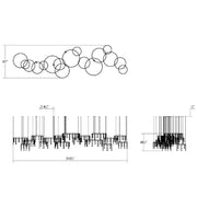 Suspenders Offset Ring System offers the ability to build a virtually limitless range of patterns and configurations of varying heights and widths. Shown here with Ladder Lights on Hangers of various lengths and Rings of various diameters, this spectacular, delicately-scaled Horizontal Matrix configuration expands its offset pattern across the expanse of the ceiling plane.