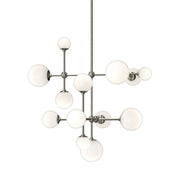 Luminous etched glass globes of varying sizes float on intersecting stems at right angles to each other to form arrangements of geometric sculptural presence and simplicity. Sabon’s expression of simplicity shows that less is definitely more.