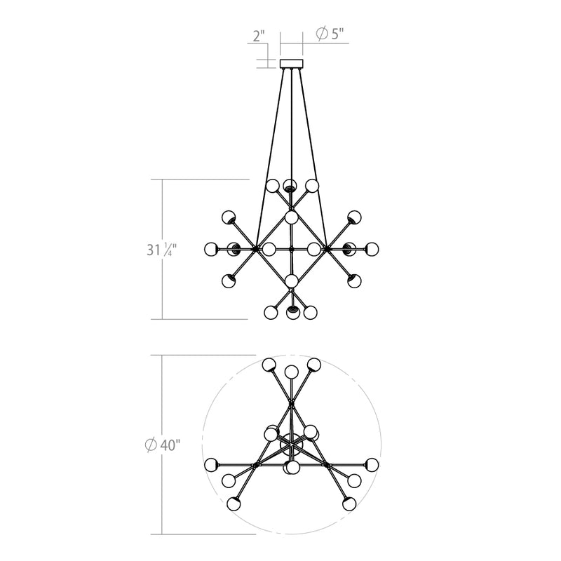 This delicately scaled but inherently strong connection of rigid triangular forms describes the achievement of structural volume from minimal elements. Named for a subatomic particle and building block of energy, Proton radiates its powerful LED illumination from pristine glass luminaires that terminate each intersecting rod. Configured in a bottom-weighted tripod called Alpha, or in a double pyramid configuration called Beta, these amazingly scaled fixtures could only be achieved through superior engineering and technology.