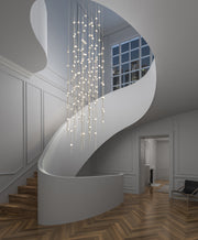 Constellation, a new system of architecturally scalable, interconnected compositions of dazzling sculptural illumination. LED hubs connected in linear strands of various lengths are suspended to from dramatically powerful luminance within a vertical space.