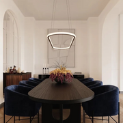Lunas soft round profile sweeps circumferentially into a smooth composition of interior and exterior illumination. Suspended delicately from minimal cables, Luna rings in several sizes can be composed in an intersecting array across a larger space or placed singly to render light with a dramatic minimal presence.