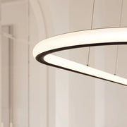 Lunas soft round profile sweeps circumferentially into a smooth composition of interior and exterior illumination. Suspended delicately from minimal cables, Luna rings in several sizes can be composed in an intersecting array across a larger space or placed singly to render light with a dramatic minimal presence.