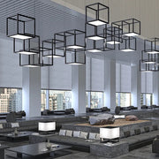 Cubix brings scalability, volume, and constructive interest to architectural illumination. Arrayed in precisely interconnected relationships, these suspended cubes are joined to each other by a shared leg on each frame.