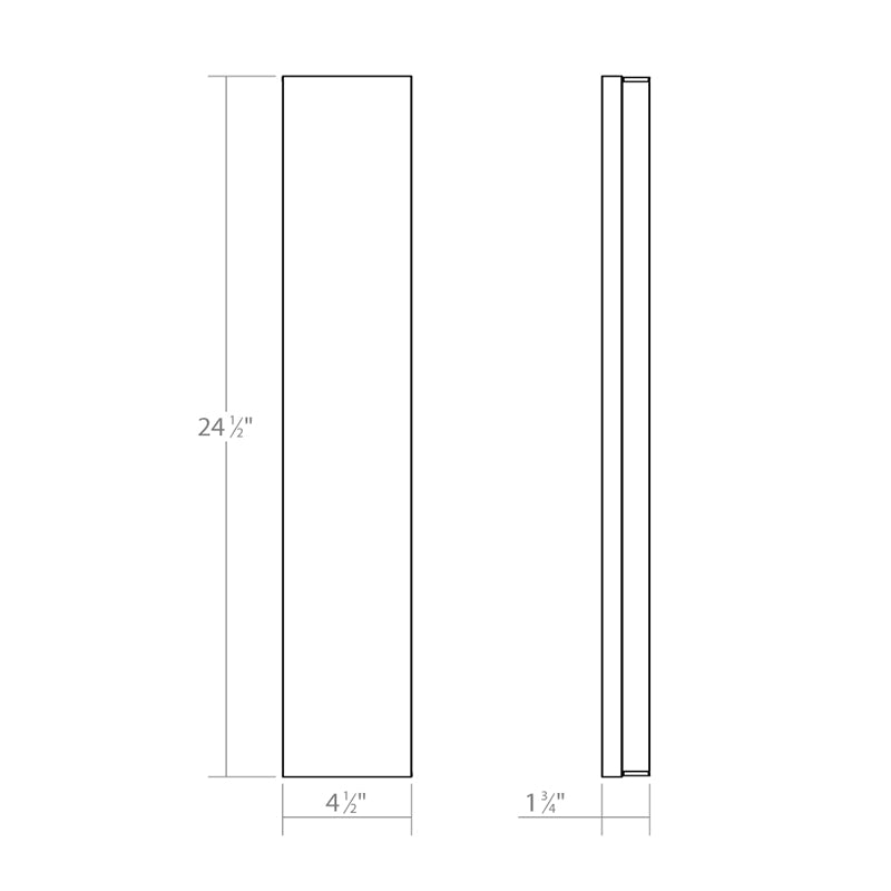 Vanity Extra Wide is a clean, unified approach that provides linear lighting to a vanity wall or ceiling installation, and provides a great solution to an often unresolved problem: long enough to extend the length or width of a bath or vanity mirror and broad enough to cover the electrical box cleanly, without an additional canopy or bracket. Vanity Extra Wide mounts directly to the surface and can be flushed up to the edge of a mirror or wall.
