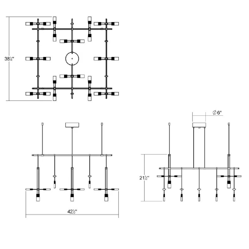 Sonneman S1H36K Suspenders 36" 2-Tier Satin Black Grid with Etched Chiclet Luminaire