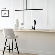 The simple frame of the Stagger 48 Linear Suspension by Mick De Giulio for Tech Lighting offers a symmetrical element to a multitude of spaces to create more visual texture and energy. The generous size and slender shape are inventive enough in scale and depth to delicately illuminate while blending with the overall architecture of the space. The modern finishes and dramatic presence of LED light elevate your environment symmetrically and stylishly above elements like a dining table or kitchen island.
