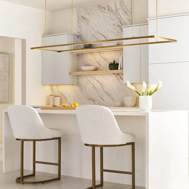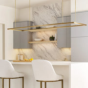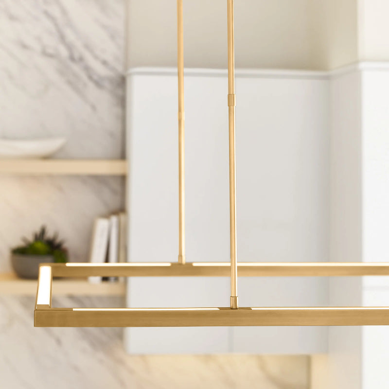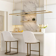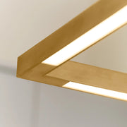 The rectangular frame and grand scale of the Stagger Halo 84 Linear Suspension by Mick De Giulio for Tech Lighting offers a symmetrical element to a multitude of spaces to create more visual texture and energy. The generous size and slender shape are inventive enough in scale and depth to delicately illuminate while blending with the overall architecture of the space.