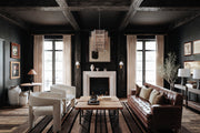 A bold mix of materials, textures, and colors come together in a beautifully unique way. Denton features a traditional tapered white linen shade atop a thick stem wrapped in grass cloth with Patina Brass accents. This unexpected sconce has an elevated, organic vibe that works well bedside, in the bath or styled in other interior spaces throughout the home.