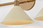 A modern interpretation of Art Deco shapes, the Jovani bath bar features elongated arms and sharply tapered Soft Sand shades. The clean design highlights the connections between elements through pronounced fittings and subtle fluting details.