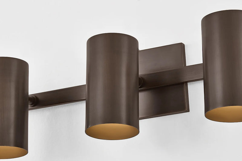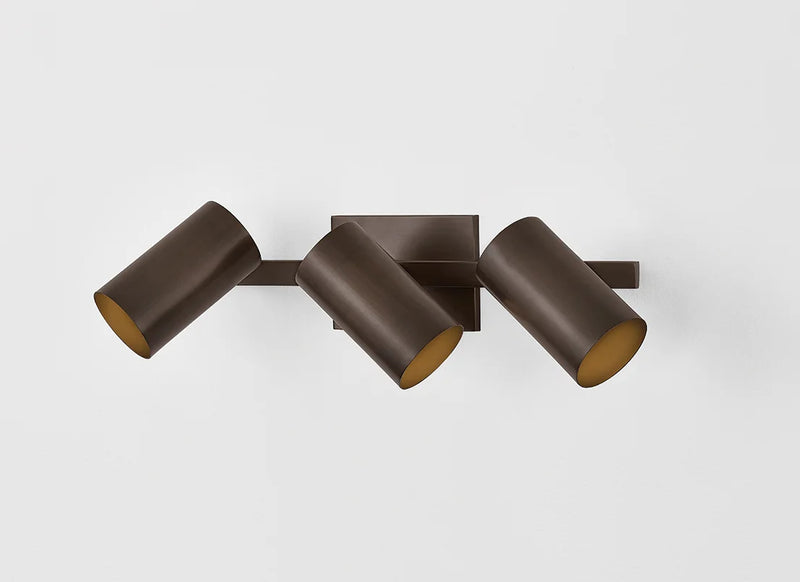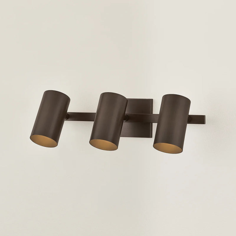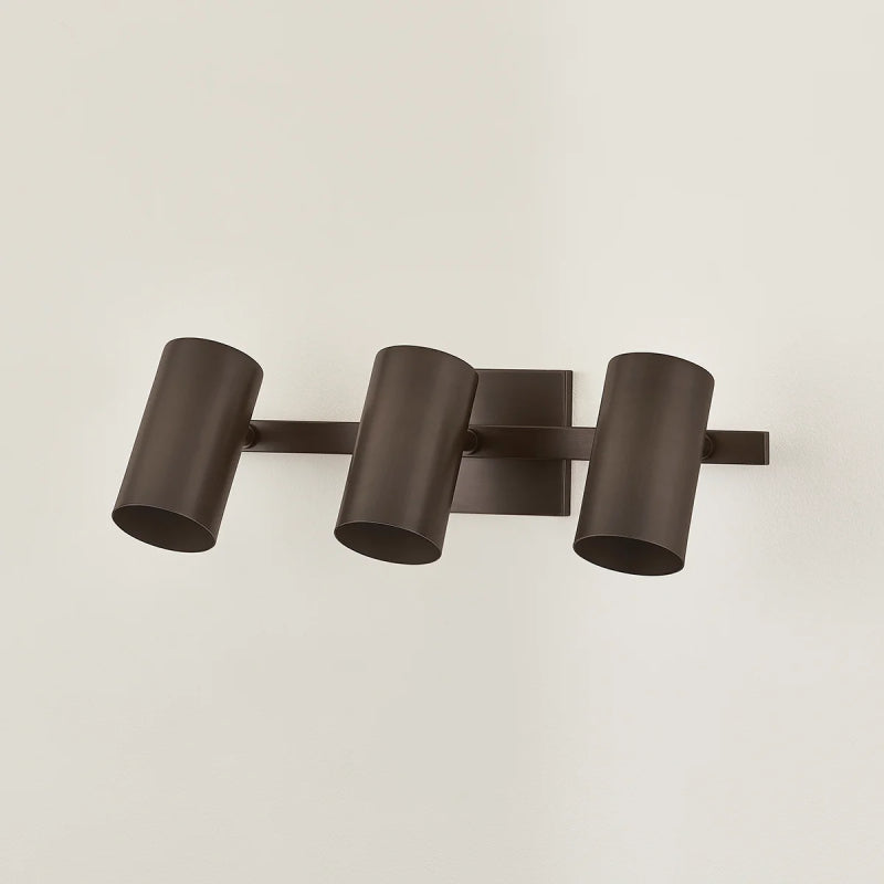A sleek track light with a modern edge, Rueben is designed for a modern bathroom. Befitting mid-century style homes, the industrial-inspired silhouette incorporates right angles and conical shades.