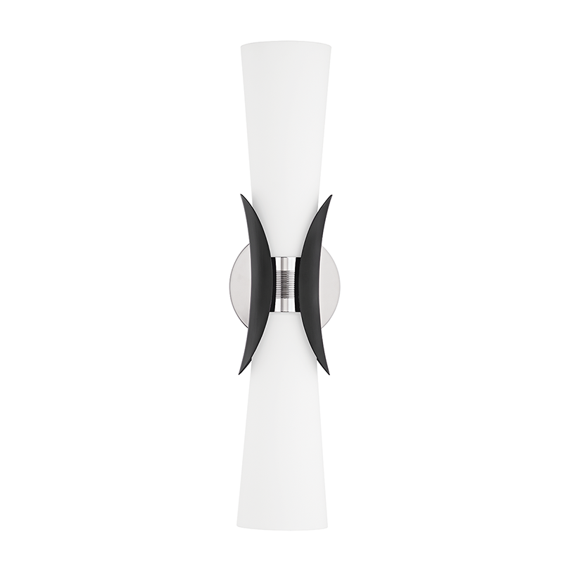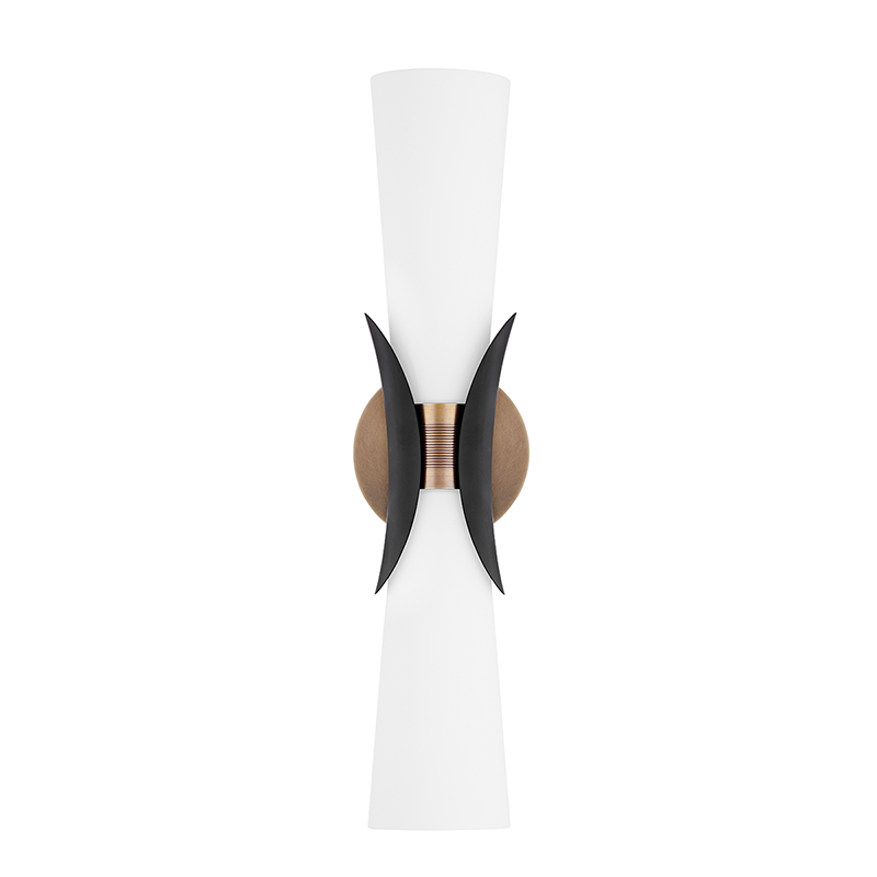 Sleek and slender, Muncie is full of pretty little details. An opal etched glass shade is wrapped in the middle by a ribbed metal band in Patina Brass or Polished Nickel and hugged on each side by curved pieces of Soft Black metal. The result is a beautiful hourglass silhouette that adds a soft glow to any space.