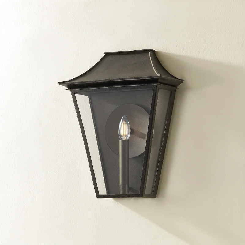 Inspired by architecture, the Tehama lantern is a showstopper. Prioritizing illumination, the reflector positioned behind the candle enhances the dispersal of light. Clear glass panes provide an unobstructed flow of light, while the angular frame and flipped edges of the roof draw the eye upwards.