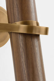 Crafted from walnut wood and Patina Brass, this spotlight sconce combines functional articulation with a natural, handcrafted feel. Its slim, cylindrical head pivots within the U-shaped cuff, which itself rotates at the backplate to provide a complete range of motion.