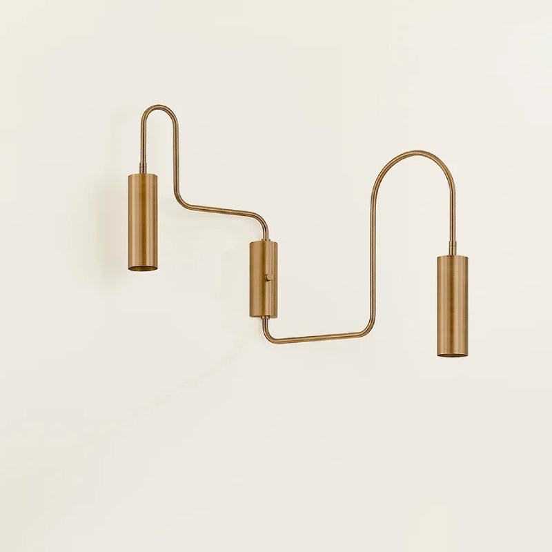 The Lark sconce exists at the intersection of modern and playful, eye-catching and functional. It establishes its own graphic vernacular with rotating arms bent into arcs and right angles. The two large cylindrical heads can be positioned to direct light as needed.