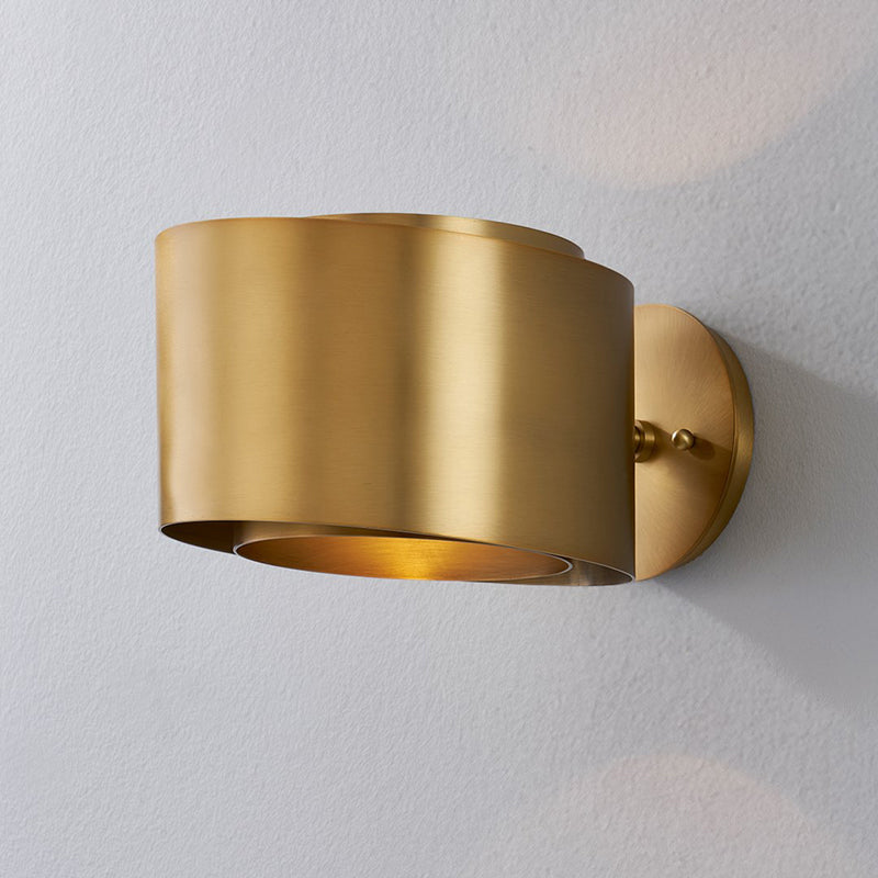 Roux is a modern, artistic update on the traditional drum shade. Metal bands with perfectly imperfect lines wrap around each other creating a sleek layered look and a feeling of movement. The wall sconce has a solid Patina Brass finish while the two-tone pendant features Patina Brass wrapped in Soft Black with industrial detailing.