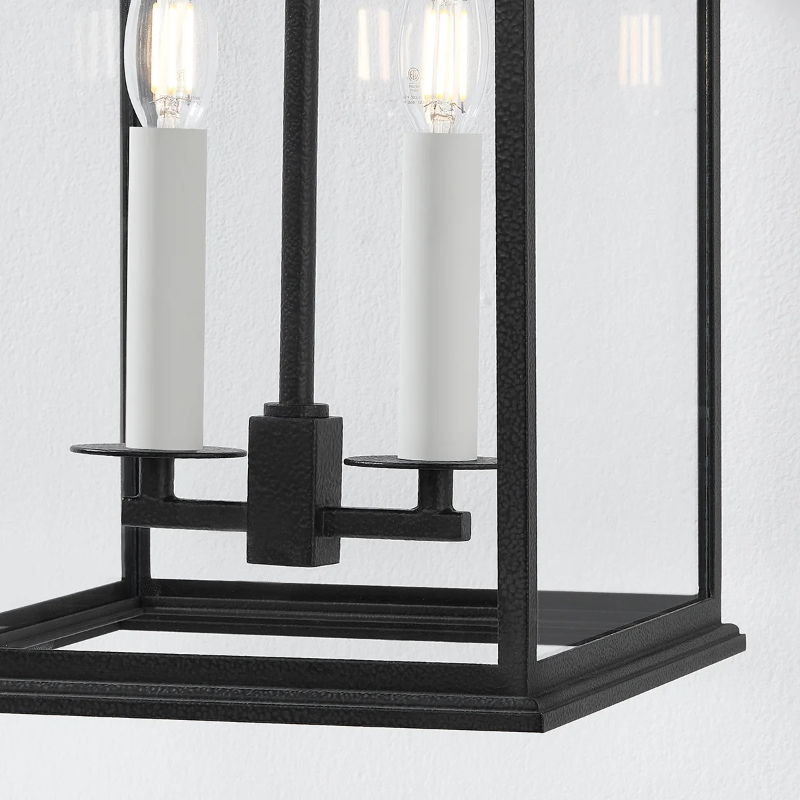 Finished in Forged Iron, this classic lantern melds old-world charm with contemporary functionality. The simplified design features four panels of clear glass encasing one or two candles while emphasizing negative space. Rounded roof vent details contribute to the heritage feel of the design. Available in four sizes, Corning suits a number of design styles, from bright cottages to farmhouses and colonial exteriors.