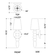 To give the Cullen floor lamp this sense of organic tension, some of the ‘stones’ are intentionally placed off-center. The elongated totemic profile of the sconce is framed by a metal circular backplate, adding an element of contrast to the monolithic design.